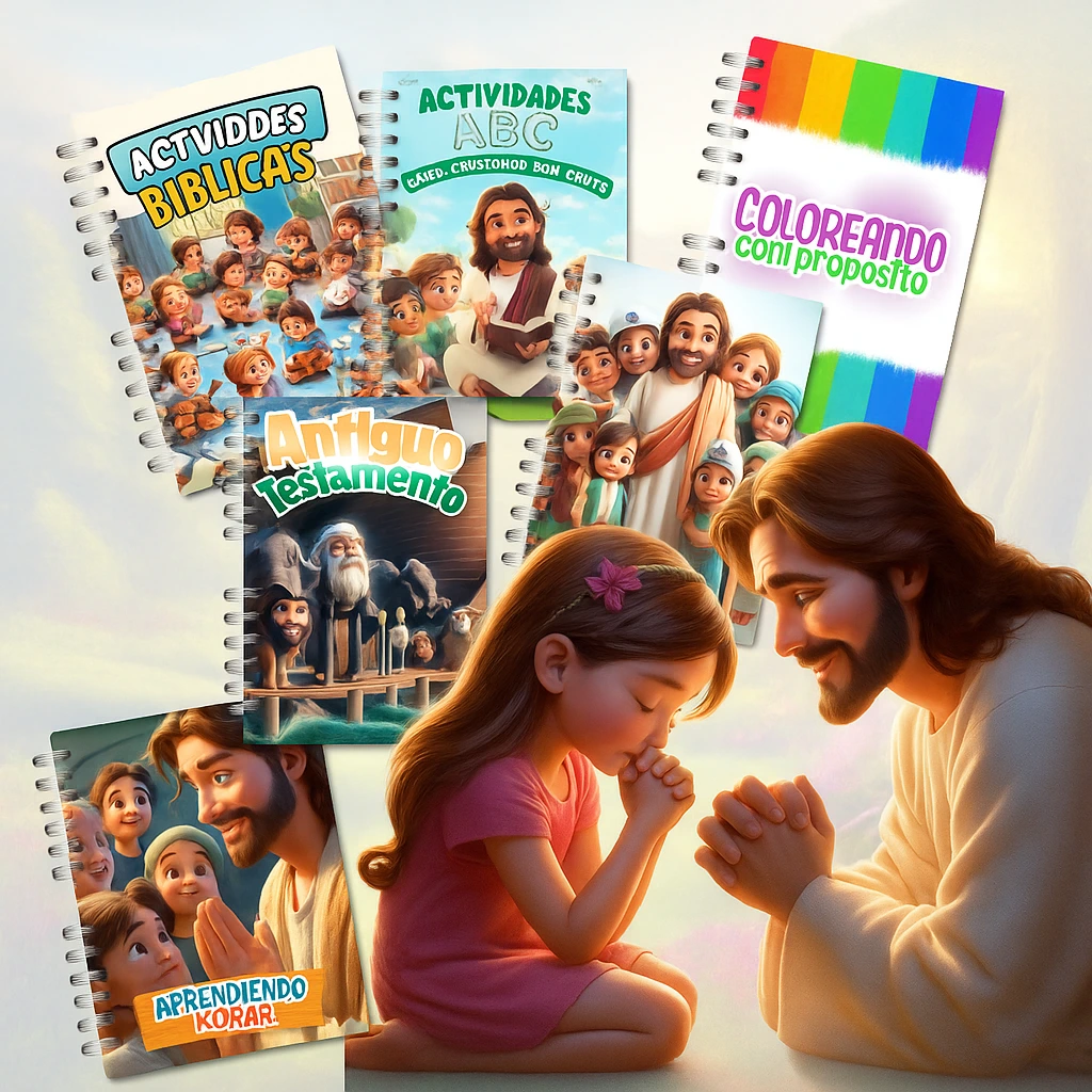 Una colección única con actividades bíblicas ilustradas, cuadernos educativos temáticos, juegos imprimibles y materiales visuales que enseñan valores cristianos de forma práctica, creativa y accesible — ideal para usar en casa, en la escuela o en la iglesia.